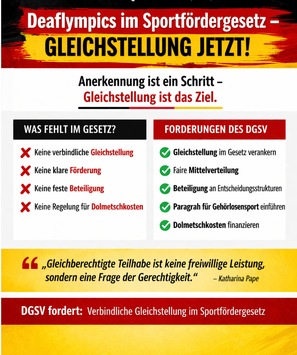 Deaflympics im Sportfördergesetz - DGSV fordert verbindliche Gleichstellung